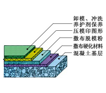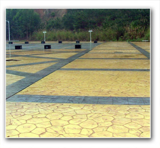 壓花壓模地(dì)坪(píng)即是用具有特製圖形的模板經過一定工藝壓印地麵成型(xíng)的一種藝術地坪;圖案和顏(yán)色可任意組(zǔ)合,整體(tǐ)一次性(xìng)壓印完成,使用無機顏料,色澤牢固持(chí)久,耐候性(xìng)、防紫外線高,耐磨性好,防滑、防水、防腐,抗壓強度可達普通混凝土強度的3倍。